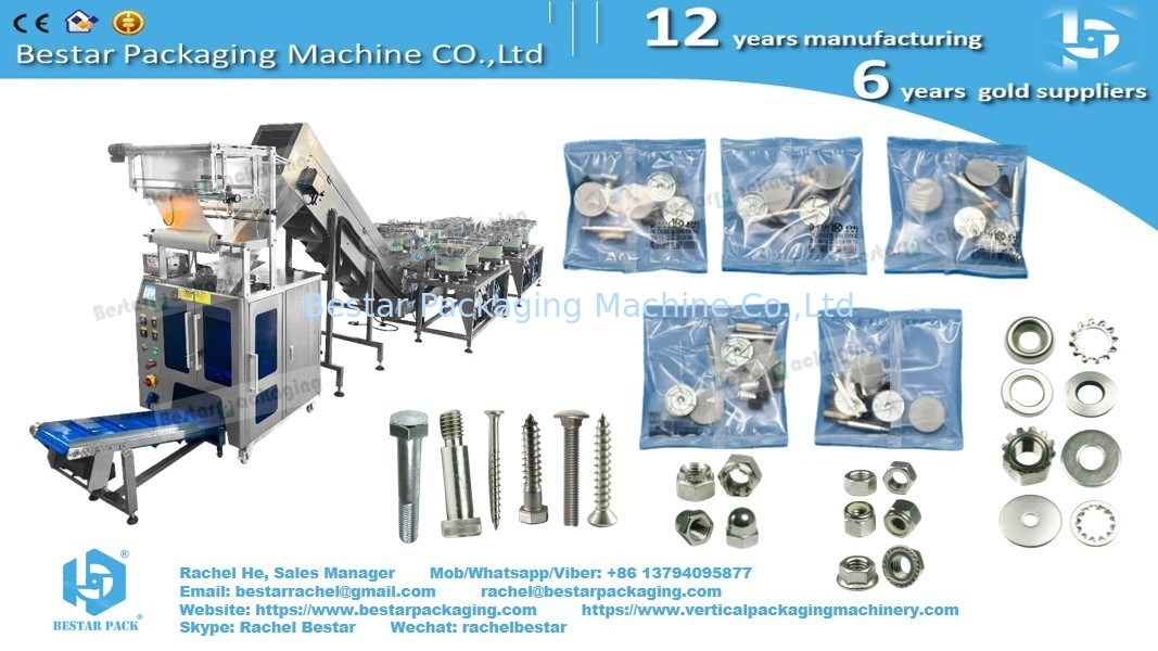 Bestar manufacture COUNTING PACKAGING MACHINE for hardware and fastener, such as coil spring, pump spring, screw, nail, nuts, bolts, washers, rivets, Concrete Anchors, Inserts, Threaded Rod, Retaining Rings, etc.