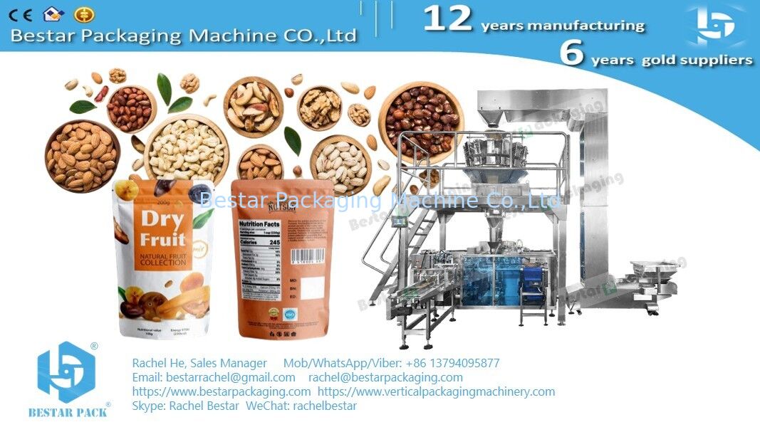 Bestar advanced packing machine with multi-head weigher, innovative 8-station automatic doypack machine, for Nuts, dry fruits, coffee beans, lentils, peanuts, oatmeal, beans, rice, candy, gummy, etc granule products.